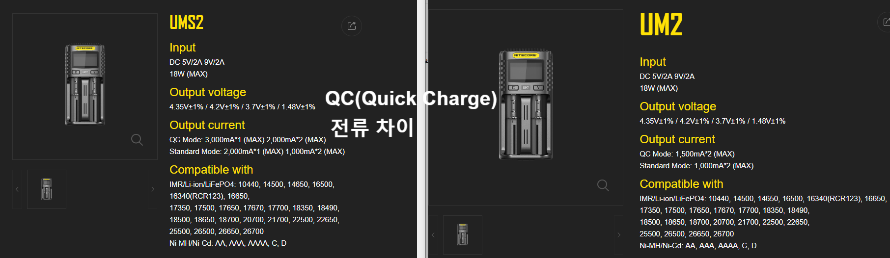 그리고 구입한 um2 입니다. 알아보니 신형도 나왔네요 (https://charger.nitecore.com/product/ums2)